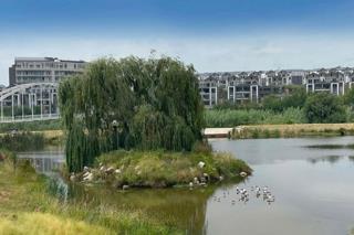 As you step into the open-plan living space, you are greeted by a seamless blend of modern design and natural elements. The spacious lounge has a tranquil Zen vibe, adorned with lush greenery and plants, perfect for unwinding after a busy day. A large sliding door opens onto the sunny balcony, framing panoramic views of the river and allowing the soothing sounds of flowing water and chirping birds to create a serene ambiance indoors. Ambient lighting further enhances the atmosphere, adding warmth and sophistication to the lounge area.