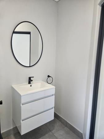 Bathroom: Stylish with a shower only.