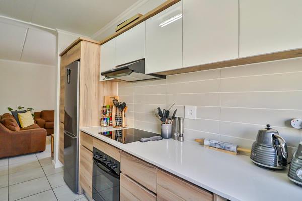 Open plan kitchen comes with standard Defy appliances, washing machine, dishwasher, fridgefreezer, and stove. Caesar stone table tops.