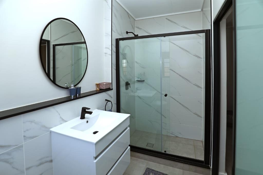 The well-appointed kitchen comes fully equipped with essential appliances, including a fridge, dishwasher, and washing machine. The master bedroom features an en-suite bathroom with a shower, while the two additional bedrooms share a full bathroom complete with a standalone bathtub and separate shower.