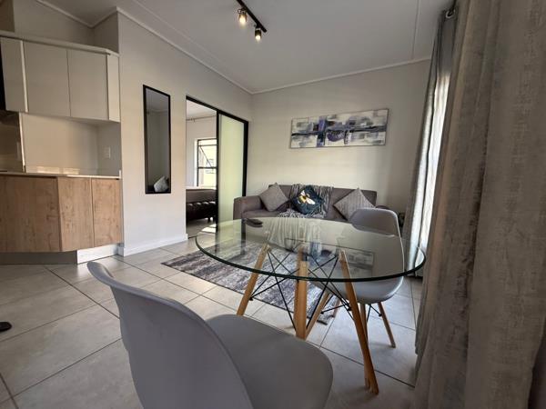 This stylish fully furnished 1-bedroom apartment is located in the prestigious Munyaka Lifestyle Estate in Waterfall, Midrand, offering secure and modern luxury living.