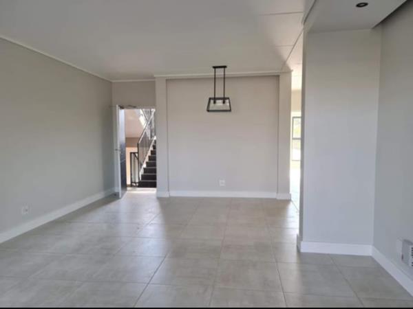 Spacious dinning lounge leading onto the covered patio with built-in gas braai overlooking the beautifully manicured garden.