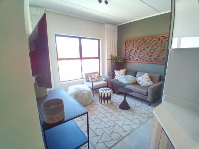 Experience refined modern living in this elegant upstairs apartment, perfectly positioned within a secure and sought-after estate. The residence features a spacious bedroom with sleek built-in cupboards and a beautifully appointed bathroom showcasing contemporary finishes. A sophisticated open-plan kitchen, complete with quality appliances, flows effortlessly into the dining and lounge area, extending onto a covered balcony ideal for stylish outdoor entertaining. A single covered carport is included, with prepaid water and electricity for convenience and control.