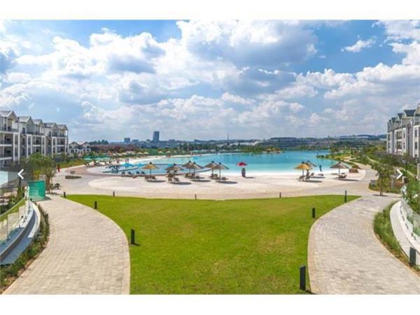This luxurious apartment is on the fourth floor with spectacular views in a brand new complex with Lagoon, in Waterfall, which is located near Mall of Africa, Waterfall Corner and Woodmead Shopping Centre. The unit has a modern kitchen furnished with a smeg fridge, oven, stove with an ample amount of cupboard space and lovely counter tops. The living area with air conditioning is located closely to the kitchen, providing an open plan setting and opens onto the balcony, providing a vast amount of light to enter the unit. The bathroom is neat as well as eccentric and adds to the theme of the property.