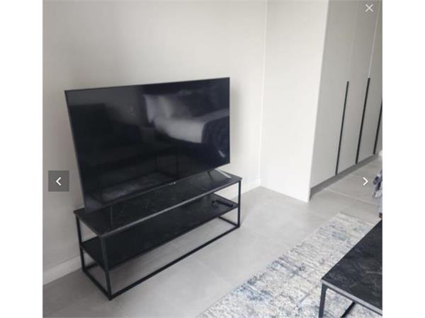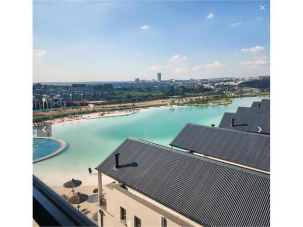This luxurious apartment is on the fourth floor with spectacular views in a brand new complex with Lagoon, in Waterfall, which is located near Mall of Africa, Waterfall Corner and Woodmead Shopping Centre. The unit has a modern kitchen furnished with a smeg fridge, oven, stove with an ample amount of cupboard space and lovely counter tops. The living area with air conditioning is located closely to the kitchen, providing an open plan setting and opens onto the balcony, providing a vast amount of light to enter the unit. The bathroom is neat as well as eccentric and adds to the theme of the property.
