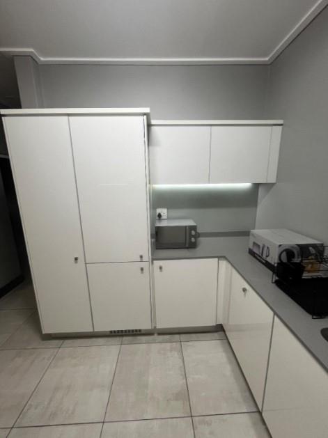 The London styled kitchen has laminate flooring, ample cupboards and four appliances namely fridge, washing machine, dish washer and tumble dryer.