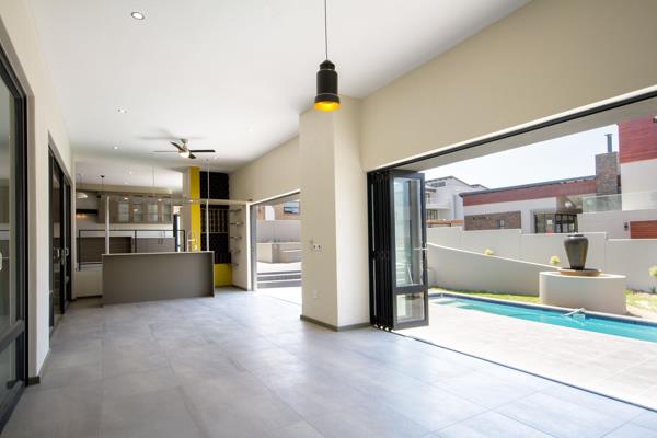 Situated in the prestigious Waterfall Country Estate this home offers an open plan living area with gas fireplace and an enclosed patio complete with fitted bar, wine rack and stack-back doors that open onto the beautiful garden and large swimming pool. There is a spacious room off the covered patio which could easily be utilised as a studywork from homekids play room or pyjama lounge. The kitchen is well designed to flow with the lounge and patio and has Caesar stone counter tops with a centre island as well as gas hob and electric oven. Separate scullery with space for 3 appliances. A guest bedroom with en-suite bathroom is located on the lower level.
