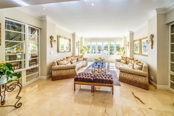 The formal living spaces include two elegant lounges one with a gas fireplace, perfect for cozy evenings, and another that opens up to the beautifully garden, providing a seamless indoor-outdoor living experience. The dining room is ideal for hosting dinner parties and gatherings.