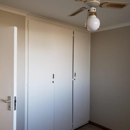 This unit is facing north with a sunny and welcoming open-plan living space and warm bedroom. The kitchen is very functional with neat cupboards and space for a double-door refrigerator. The bathroom has a bath and shower, the toilet is separate. The unit overlooks the communal garden with braai facilities. Each unit has a lockup garage and covered parking when available. The unit has pre-paid electricity. 4th floor unit.Move-in ready. Floor recently redone.