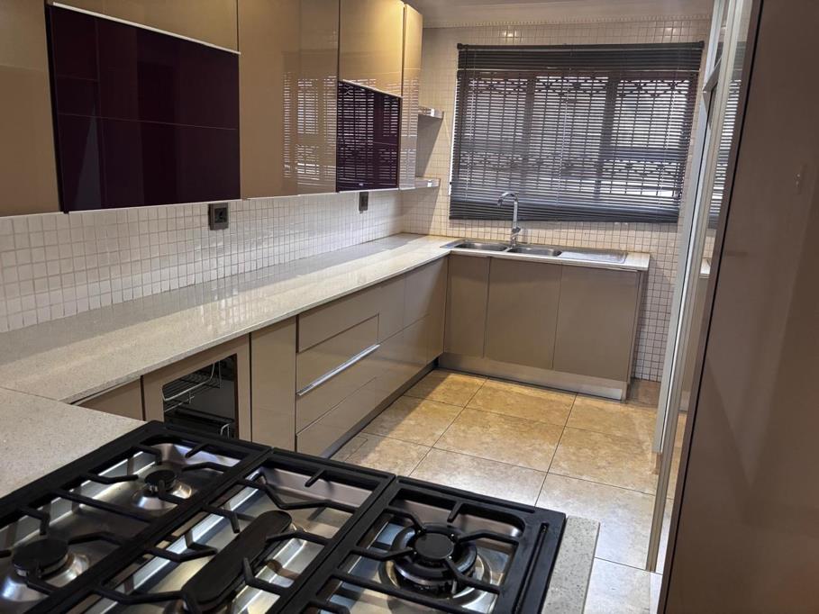 The heart of this home is definitely the living areas. Youll find two lounges, a dedicated dining room, and even a family TV room perfect for movie nights or just chilling out. The modern kitchen is a real highlight, boasting stylish two-tone cabinetry, light speckled countertops, a gas hob for easy cooking, and a double sink. Plus, there''s a chic mosaic tile backsplash that adds a touch of flair. The whole space feels bright and airy thanks to large glass doors and modern tiled flooring throughout.