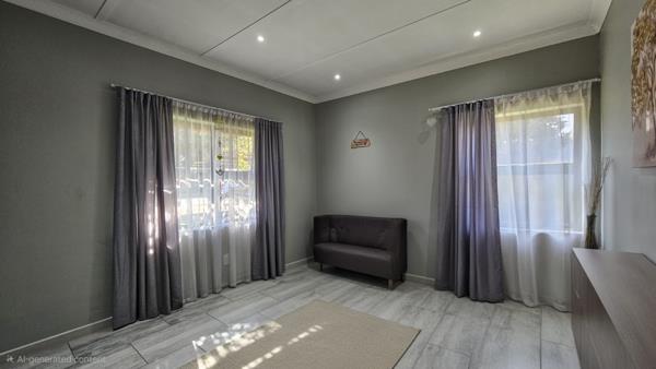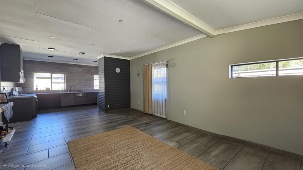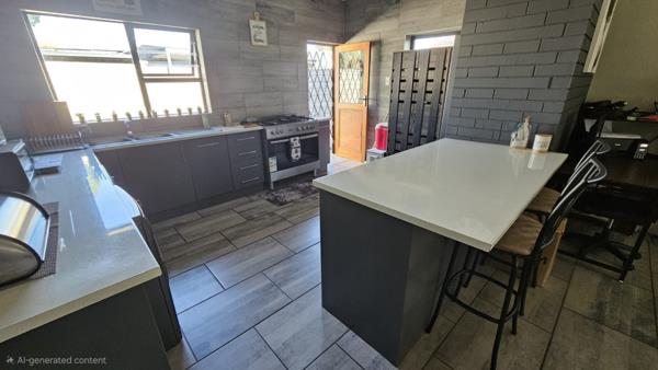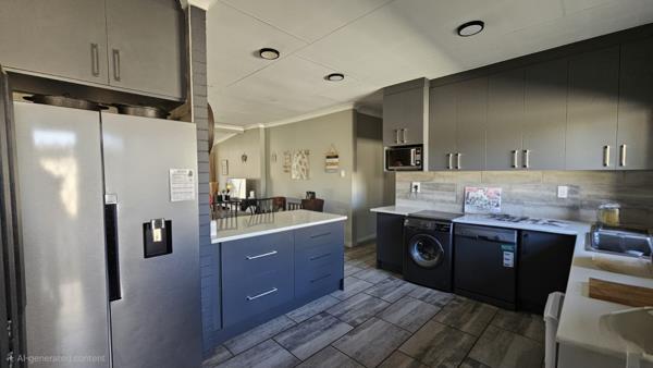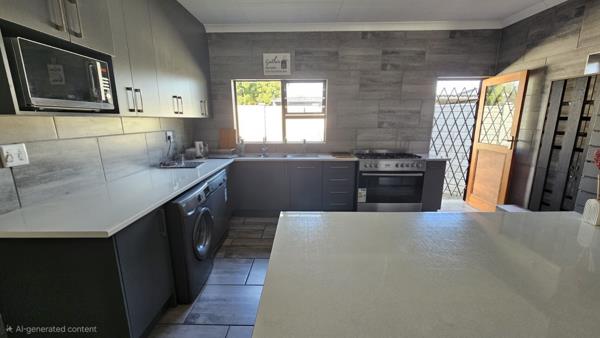 Kitchen with lots of cupboards. Space for double door fridge, dishwasher and washing machine.
