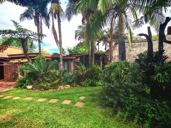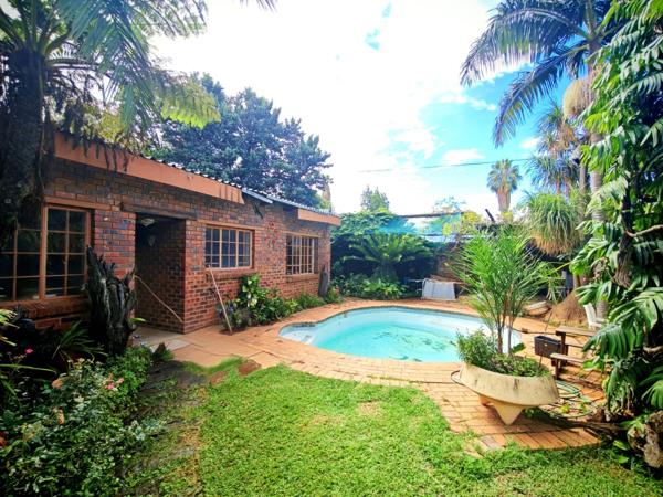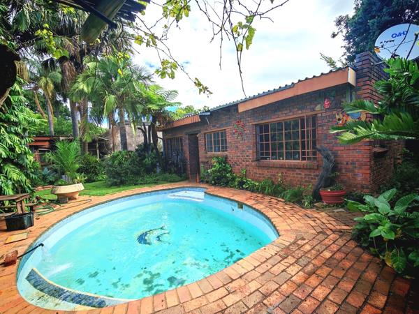 Sparkling swimming pool and generous outdoor space ideal for entertaining with its large thatch lapa & built-in-braai.