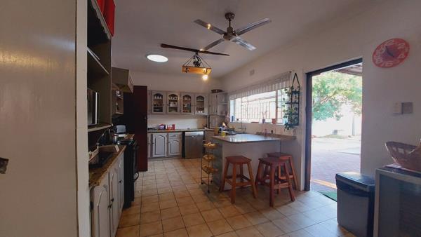 Spacious kitchen features a double sink, pantry, electric oven and stove, space for 4 main appliances and an abundance of counter and cupboard space.