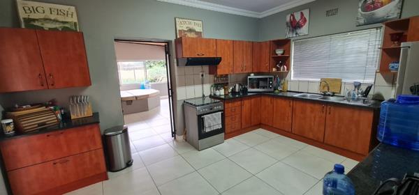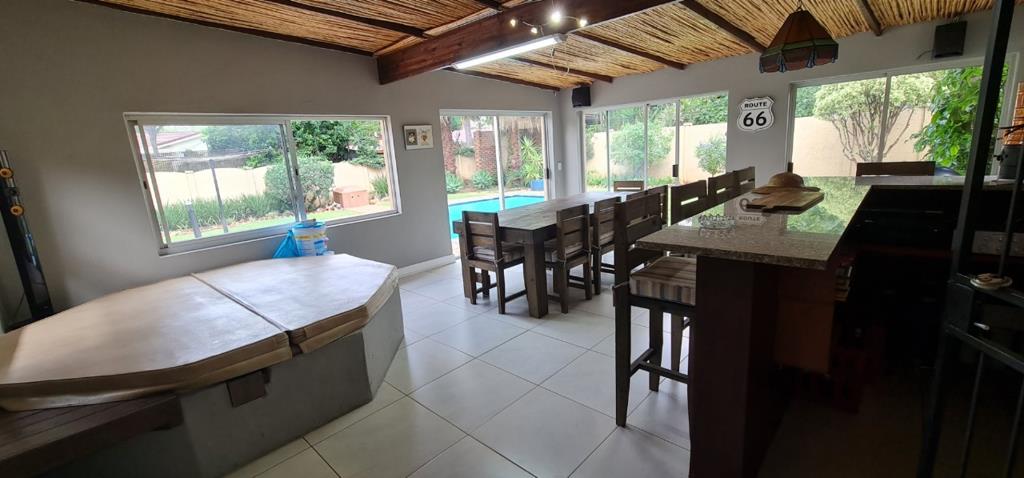 This expansive 3-bedroom property offers ample living space with four generous living areas, including a lounge, dining room, and TV room. The well-appointed kitchen opens to a welcoming entertainment area featuring a built-in braai, perfect for hosting friends and family. Step outside to enjoy a sparkling pool and a lush, manicured garden. Additional features include two carport parking spaces and prepaid electricity, making this home both comfortable and convenient.