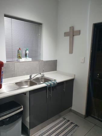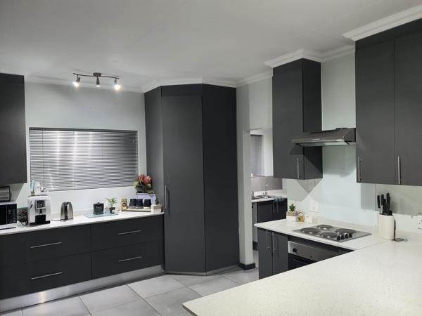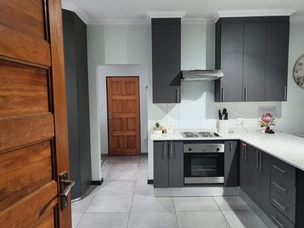 This 3-bedroom house, situated on a pan-handle property, offers an en-suite bathroom with a his-and-hers basin, shower and bath, second bathroom with a shower. 3 bedrooms with build-in cupboards. Granite tops in the kitchen, with separate scullery. Comfortable, easy to maintain garden, with garden shed. Pet and child friendly. Pre-paid electricity.