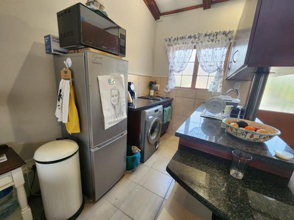 The Kitchen offers space for a front loader washer, built in cupbaords, oven and stove.