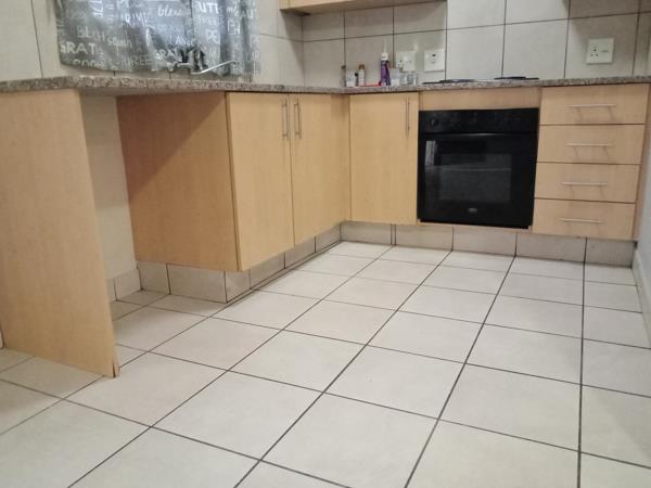 A modern 3-bedroom duplex is available for rent in the Fynbos Complex, Annlin, Pretoria. This spacious home features 2 bathrooms and 2 garages. The open-plan kitchen includes an electric stove and space for a washing machine. The living area opens through sliding doors to a private garden.