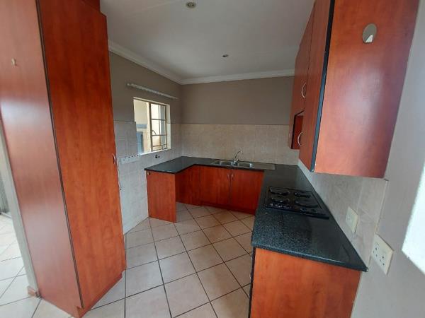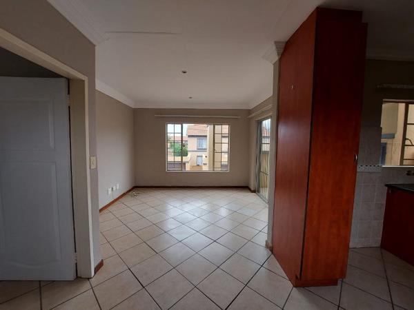 The apartment features a neat and functional kitchen with ample cupboard space, flowing into an open-plan lounge area that creates a warm and inviting living space. The unit includes one well-sized bedroom with built-in cupboards and an en-suite bathroom, offering comfort and convenience.