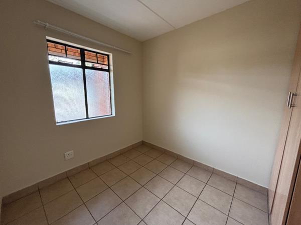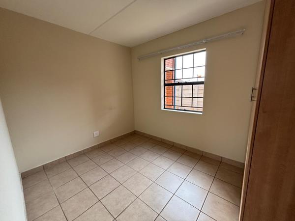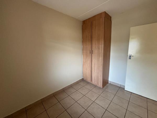Bright, neat and affordable perfect for professionals, a small family or a couple. This top-floor 2-bedroom apartment in Chantelle, Akasia offers comfortable living with the added benefit of a solar geyser to help reduce electricity costs.