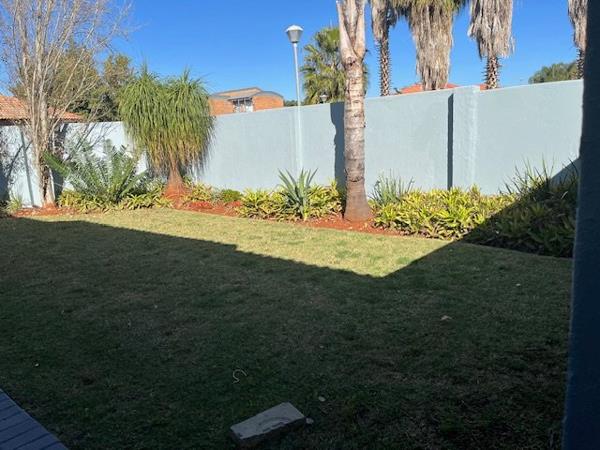 Look no further move in and stay property features three bedroom two bathrooms and open plan spacious kitchen and bathroom with a braai area and a huge landscaped garden and play area for kids with a double garage safe and secure complex a walking distance to Wingtip Complex and not too far from Kolonade Mall.