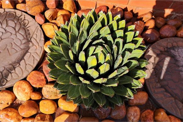Low-maintenance garden with sprinkler irrigation system