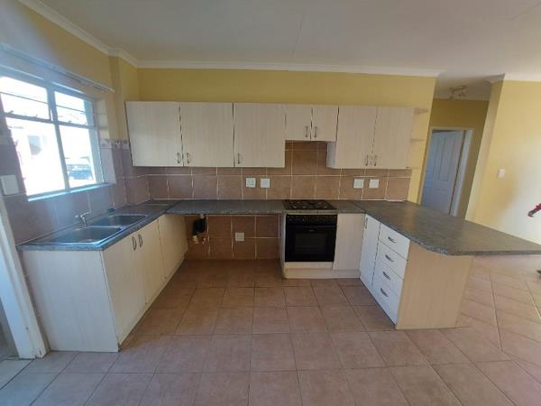 Flat to rent in Montana in Tweeriviere complex it is a first floor flat with two bedroom with build in cupboards and tiles on the floors, There is two bathrooms. There is a open plan kitchen with build in cupboards and a stove and space for a washing machine. There is a lounge and a balcony. Outside is one carport and there is a pool in the complex and playground for children. The complex is near schools and Kolonnade mall.