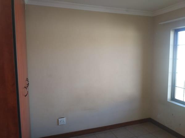 Ground floor flat to rent in Montana it is a two bedroom with build in cupboards and tiles on the floors there is one full bathroom. There is a open plan kitchen with build in cupboards and tiles on the floors a stove and space for a washing machine. There is a lounge and outside is a small patio and one carport. The complex have a pool a d playground for children. Complex is near schools and Kolonnade mall.