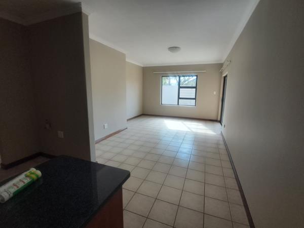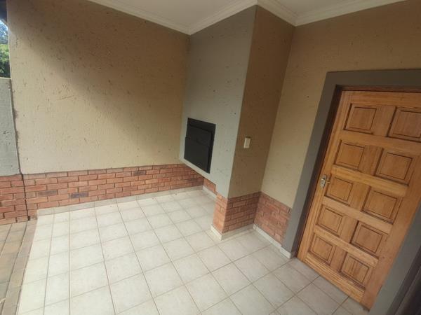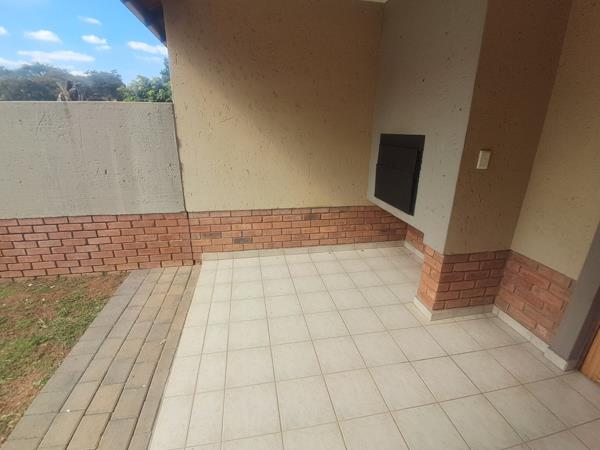 Open plan lounge dining room, opening unto a patio with built in braai.