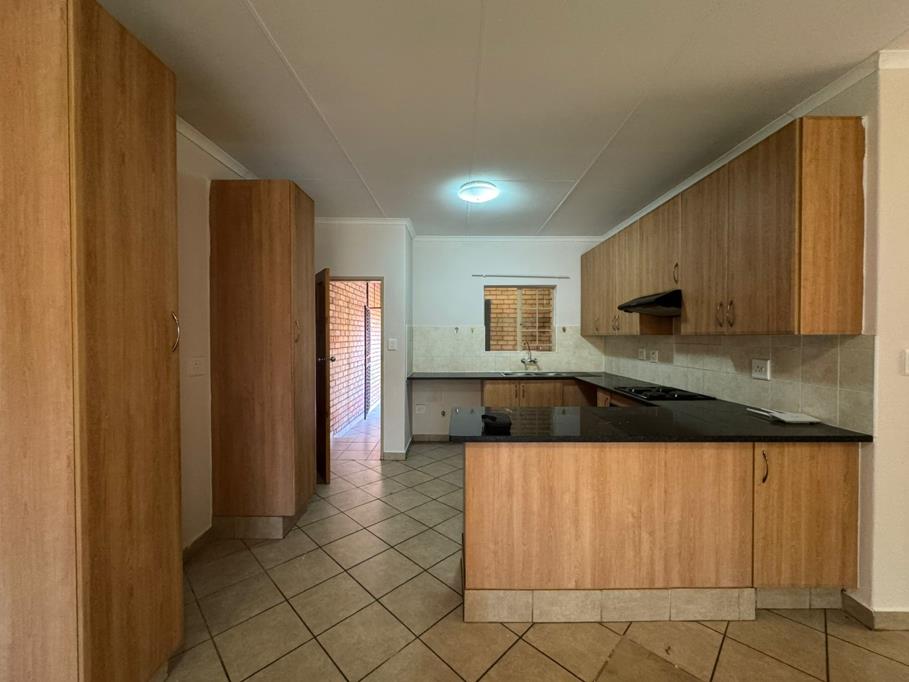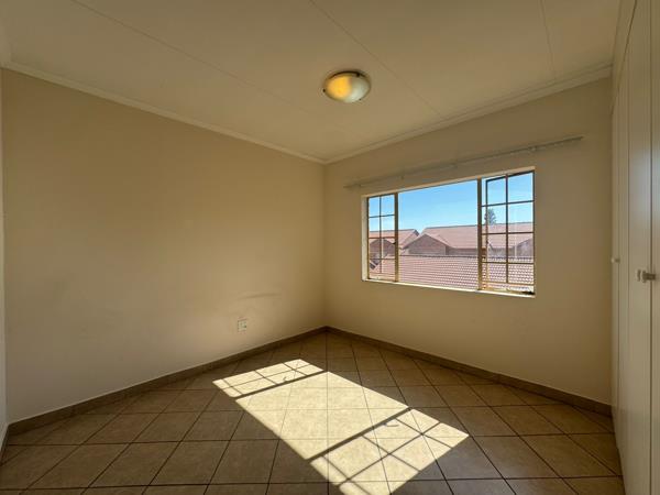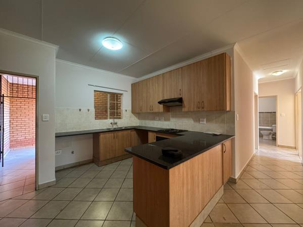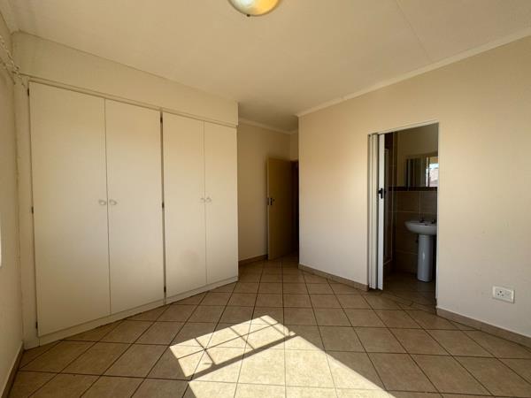 The kitchen flows into the bright and airy living area, which leads to a balcony with double doors. The patio area is perfect for entertaining, complete with a built-in braai for those relaxed evenings.