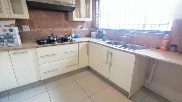 The home features a fully fitted kitchen with built-in cupboards, designed for both functionality and convenience. Outdoors, enjoy a covered braai area overlooking a sparkling swimming pool, ideal for hosting guests and relaxing with family.