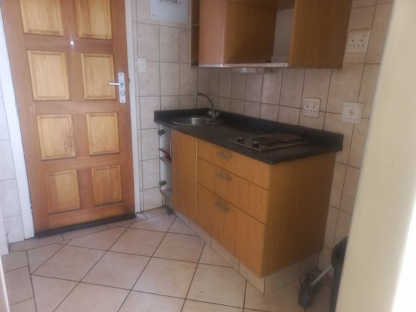Bachelor flat to rent in Arcadia it is a one room with tiles on the floors a build in cupboard there is a kitchen with cupboards a stove and space for a washing machine there is a bathroom with a shower toilet and basin. The flats is near shops schools and hospitals and is on a busroute to CBD.