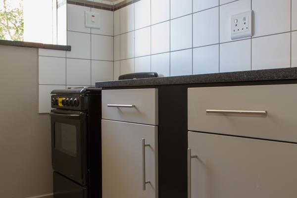 The spacious apartment can accommodate four adults, has a neat kitchen and an en-suite bathroom. Both the kitchen and bedroom have built-in cupboards. Other features include: 24-hour security, DStv connectivity, parking subject to availability as well as prepaid electricity. Our friendly live-in building manager is there to assist with maintenance and service requests.