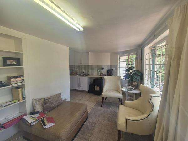 Nestled upstairs on the beautiful, tree-filled Baileys 779 property, this spacious 43m² one-bedroom apartment offers a private and tranquil living experience just 1km from the main entrance to the University of Pretoria. Accessed via a charming spiral staircase, the unit features a large bedroom with ample built-in cupboards, and a full bathroom equipped with a bath, shower-over-bath, toilet, and basin, along with a connection for a small washing machine.