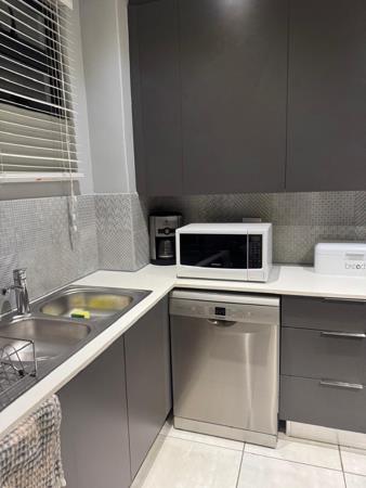 Discover modern student living in this fully furnished 2-bedroom, 2-bathroom apartment located in the vibrant iQ Brooklyn complex, Pretoria. This contemporary unit boasts an industrial-chic aesthetic, featuring sleek dark grey cabinetry, white countertops, and integrated appliances in the kitchen, complemented by a stylish tiled backsplash and is equipped with a washing machine, dryer, a dishwasher and offers two secure parking bays.