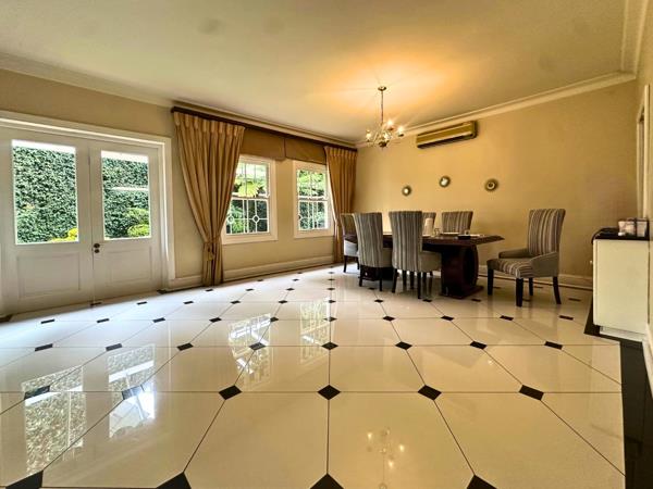 Security is of a high diplomatic standard, including 24-hour guarding, armed response, CCTV, electric fencing, burglar bars, an intercom system and a secure safe-haven area. A double automated garage provides convenient parking, and the home is well placed for access to leading schools and major routes.