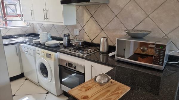 Lovely 3 bedroom, 2 bathroom furnished unit in popular and secure complex. Unit offers open plan living area with patio with a lovely view. Good security. Gas stove & Prepaid electricity. Please call to arrange a viewing