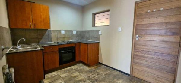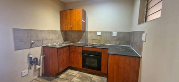 The bachelor offers a big room with a built-in cupboard, a bathroom with a shower basin and toilet, and an open-plan Kitchen with ample built-in cupboards.