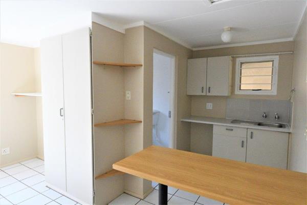 This first-floor bachelor unit is designed for student living, offering a spacious bedroom/living area, a practical kitchen, and a private bathroom.