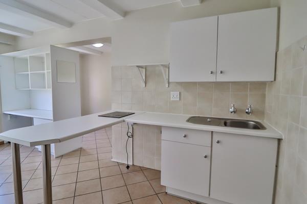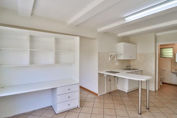 This second-floor bachelor unit is designed for student living, offering a spacious bedroom/living area, a practical kitchen, and a private bathroom.