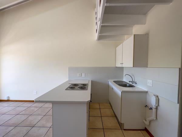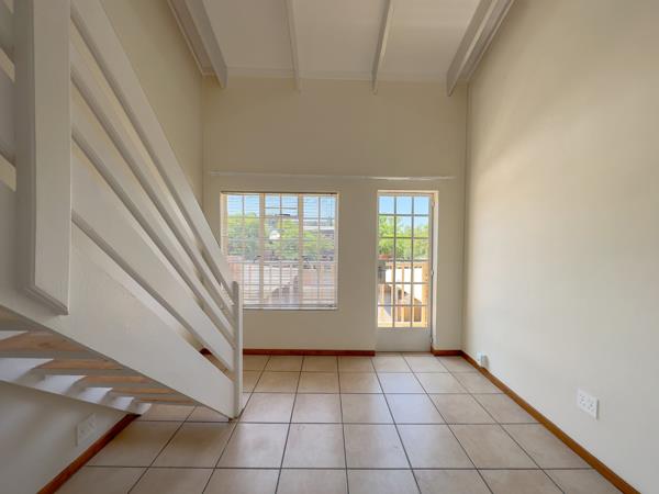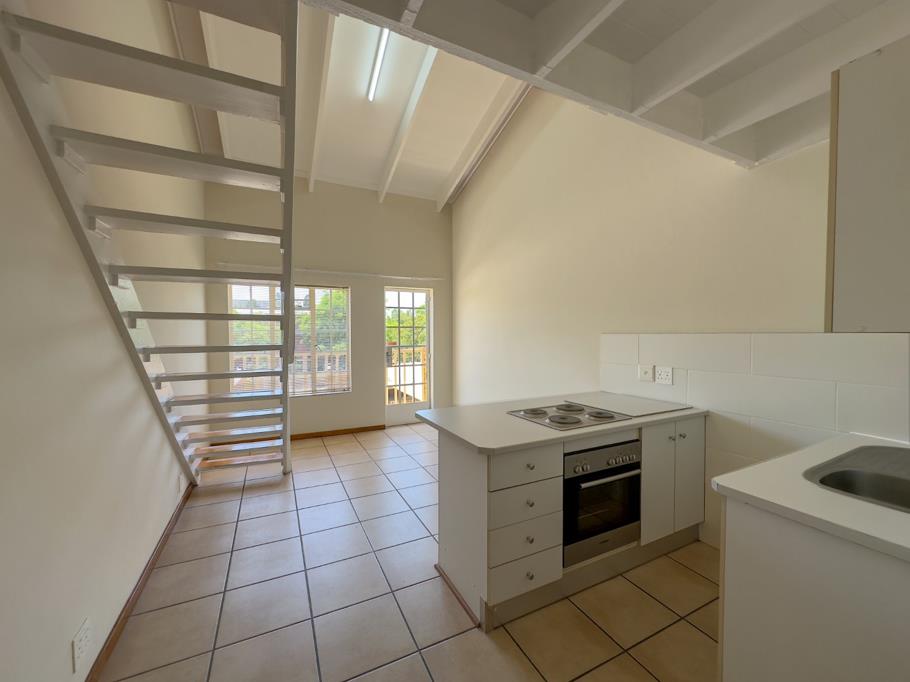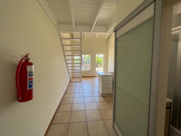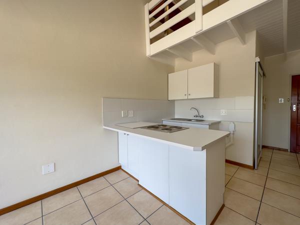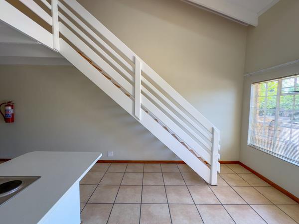 Upstairs is a loft bedroom, with built-in cupboards and spacious desk.