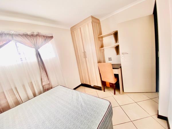 The accommodation includes two bedrooms, one with an en-suite bathroom for added privacy and convenience. The en-suite bathroom provide a touch of luxury, making your daily routine a pleasurable experience. Parking is a breeze with your own dedicated carport, ensuring that your vehicle is protected from the elements. For your visitors, ample parking space is available, making it easy for friends and family to drop by for a visit. This complex also offers a communal student area that provides you with benches for gatherings or brainstorming on studies and tasks.