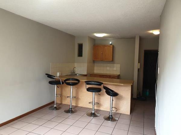 This contemporary apartment offers an open-plan kitchen seamlessly integrated with a spacious living and dining area, leading out to a charming private balcony. The unit features a generously sized bedroom with built-in cupboards and a full bathroom.