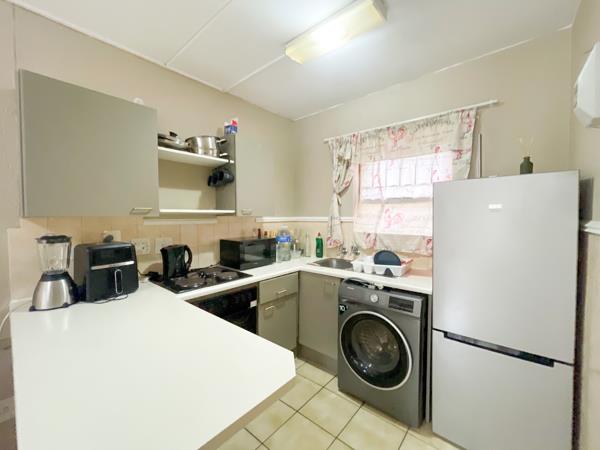 Situated on the ground floor, the unit offers a practical and comfortable layout. As you enter, the kitchen is positioned to your right and flows neatly alongside the living area. The kitchen features a breakfast nook and provides everything you may need in a perfectly sized, functional space. The living area opens out through a sliding door, creating a light and airy atmosphere.