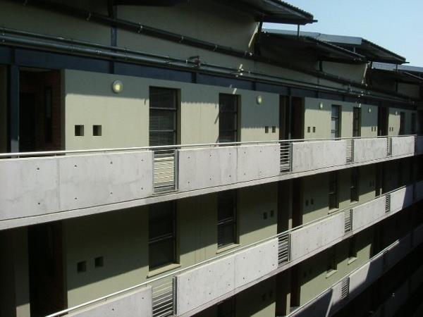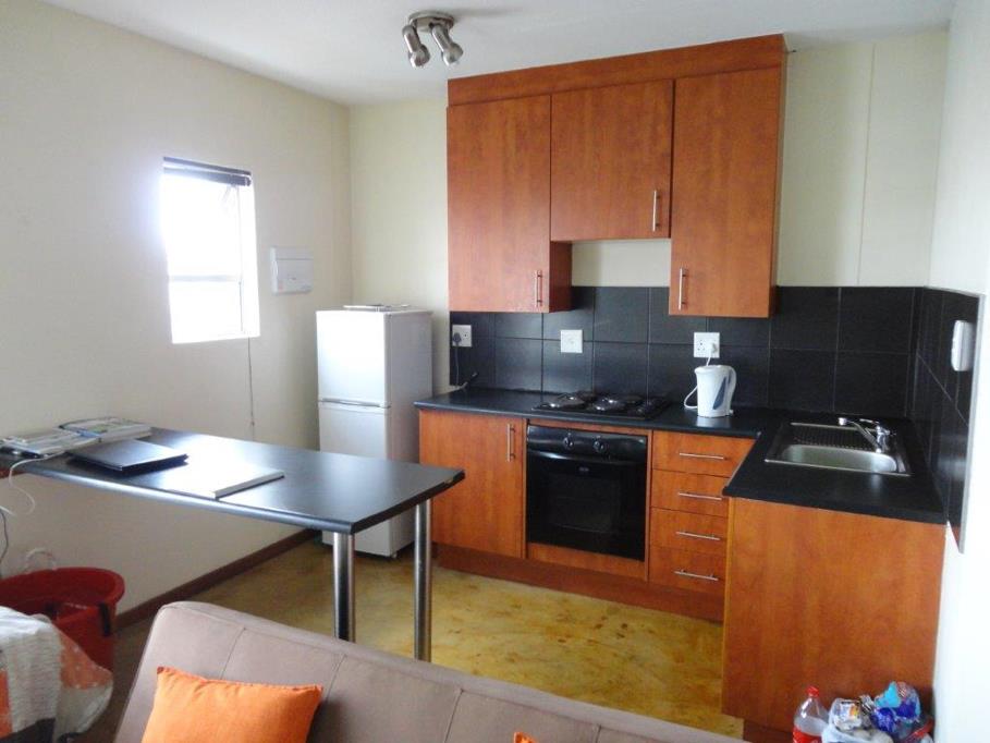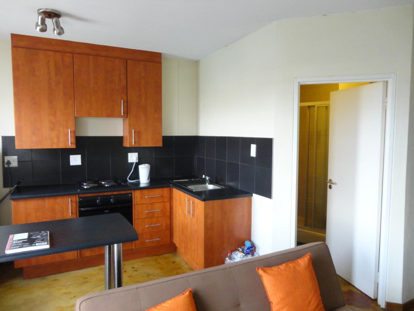 This bachelor flat is furnished with a modern cherry wood kitchen with counter top stove and oven unit. The bedroom lounge area has a built in wardrobe. The living area is shared open plan and is highlighted by a window with great treetop views, overlooking the Hatfield area.