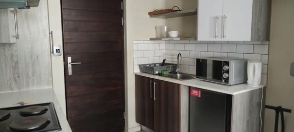 Open plan kitchen and living area that walks out to your balcony to enjoy a braai or to sit and study.