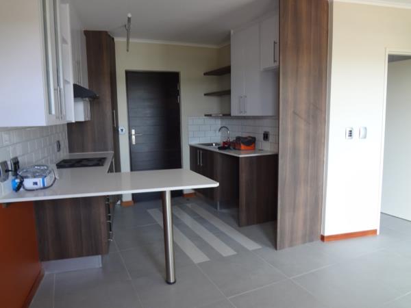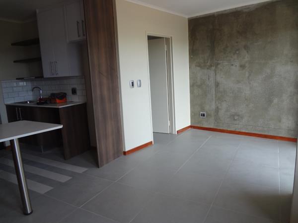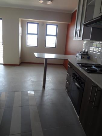 Open plan kitchen and living area with loads of cupboard space. Beautiful outward view from the balcony. Bathroom with shower, toilet, basin and clothing cupboard behind door. Corner unit.