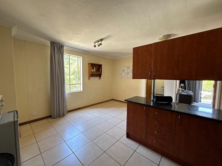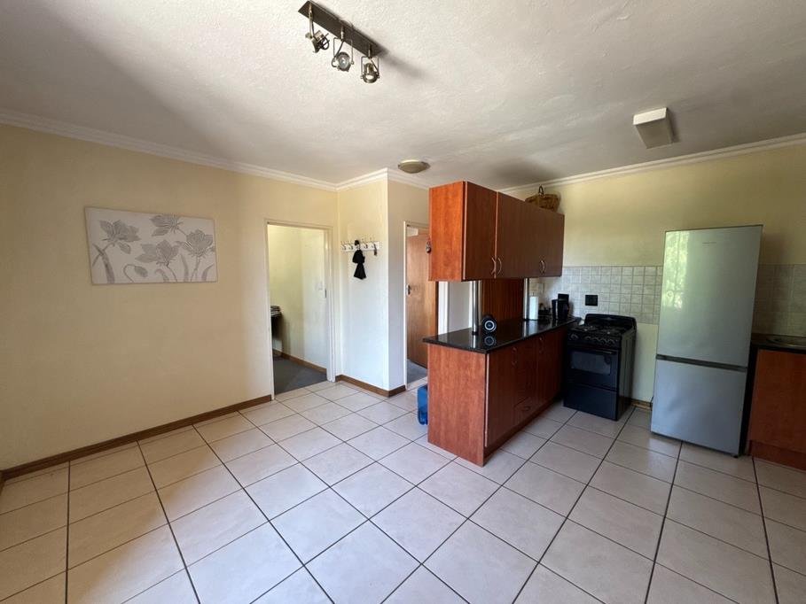 Discover this inviting 2-bedroom, 1-bathroom apartment situated in a well-maintained complex in Hillcrest, Pretoria. The residence features an open-plan living and dining area, seamlessly connecting to a functional kitchen. The kitchen is equipped with wooden cabinetry, black countertops, and a freestanding stove. Tiled flooring extends throughout the main living spaces, ensuring easy maintenance, while the bedrooms offer comfortable carpeting. Each bedroom benefits from ample natural light and direct access to a private balcony, providing a pleasant outdoor retreat. A dedicated covered parking bay is also included.