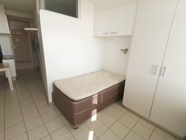 The unit has a 2 seater couch, an older TV screen, and a 3/4 bed. There are 2 built-in desks, and the whole apartment has plenty of cupboard space right through.