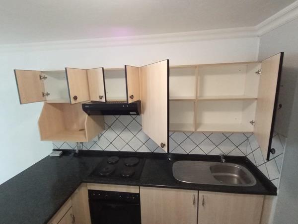 This unit is spacious and neatly tiled. The kitchen has granite tops, a stove-oven, and plenty of cupboard space. The bathroom is spacious and neat and has space for a washing machine.