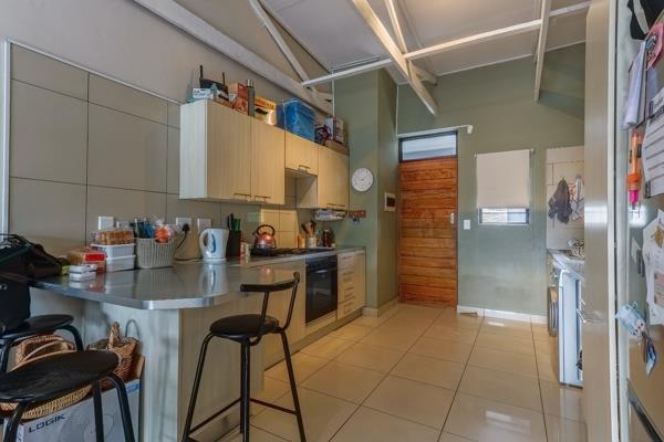 Discover modern living in this inviting 2-bedroom, 1-bathroom apartment located in the sought-after suburb of Lynnwood, Pretoria. This residence offers a seamless open-plan layout, integrating the living, dining, and kitchen areas, perfect for contemporary lifestyles. Architectural charm is evident throughout, with high vaulted ceilings and exposed beams that enhance the sense of space and character. Durable tiled flooring extends across all main areas, ensuring easy maintenance.